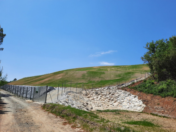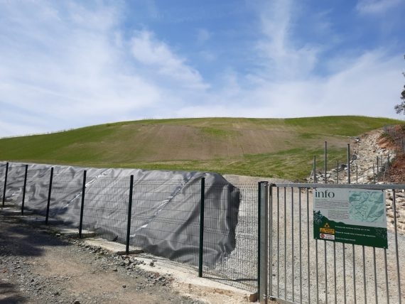 L’ancienne digue à stériles a fait l’objet de travaux de confinement et d’installation d’un système de drainage spécifique :